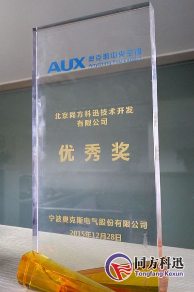 會(huì)上,北京同方科迅技術(shù)開發(fā)有限公司15年度銷售業(yè)績(jī)得到了奧克斯的充分認(rèn)可,獲得了現(xiàn)場(chǎng)頒發(fā)的年度優(yōu)秀獎(jiǎng)獎(jiǎng)杯。