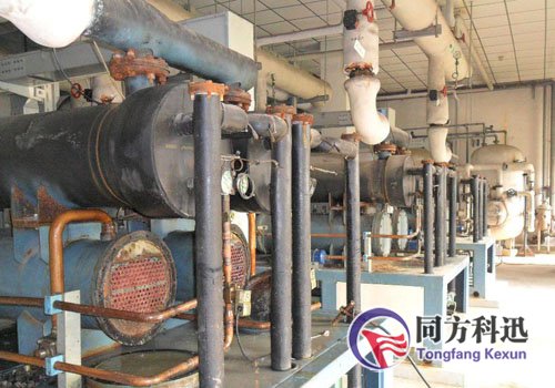 中央空調(diào)冷凝器極易結(jié)垢,正常在夏季供冷期應(yīng)該做日常水處理,否則在高硬度水質(zhì)的環(huán)境下運(yùn)行,循環(huán)水系統(tǒng)內(nèi)溶于水中的無(wú)機(jī)鹽就會(huì)隨著溫度的升高結(jié)晶析出,在冷凝器換熱面管壁上形成水垢,導(dǎo)致熱交換效率降低。由于水的泥沙、細(xì)菌、藻類等微生物及其分泌物形成的生物粘泥,會(huì)附著在冷凝器換熱管壁上形成泥垢,重時(shí)造成管路堵塞;而污垢、粘泥會(huì)影響熱交換效率,造成高壓運(yùn)行,嚴(yán)重時(shí)造成超壓停機(jī)。所有這些嚴(yán)重地影響了換熱設(shè)備的正常運(yùn)行。