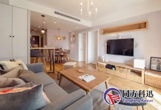 3、如果客、餐廳在同一面,所以將出風(fēng)口做在另一面墻的吊頂上,可以同時(shí)滿(mǎn)足兩個(gè)使用環(huán)境。