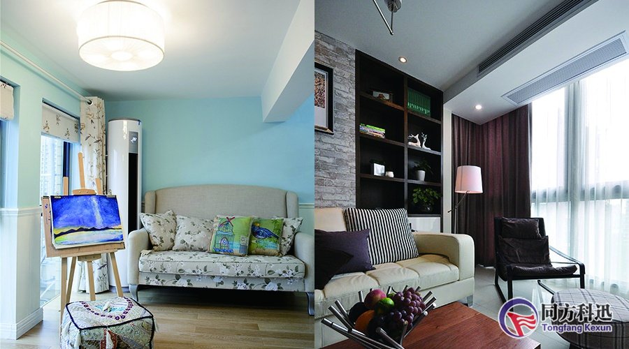 傳統(tǒng)的柜式空調(diào),考慮到管道長度和美觀性的問題,都會(huì)把內(nèi)機(jī)放置在在靠近室外的墻壁或者玻璃的位置,這樣做帶來的問題就是如果剛好擺放位置正對沙發(fā)或者床的話,就會(huì)很影響人體的舒適度,尤其是家里有老人或小孩的家庭。